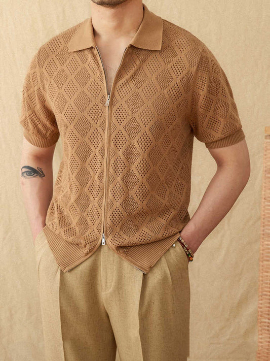 En kollektion, der indfanger ubesværet elegance i moderne herremode — poloskjorter, strik, bukser og træningsdragter — fremstillet i signaturfarver inspireret af naturens raffinerede nuancer.