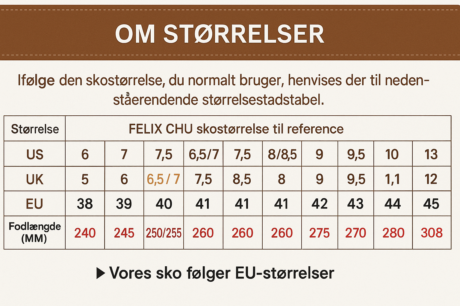 US-størrelse EU-størrelse UK-størrelse Fodlængde (mm)