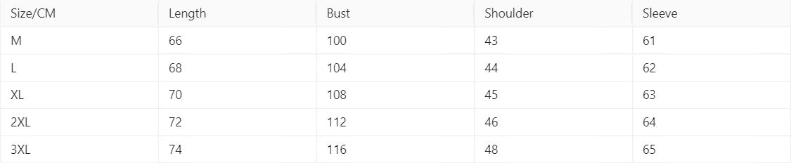 Størrelse Længde (cm) Bryst (cm) Skulder (cm) Ærmelængde (cm)